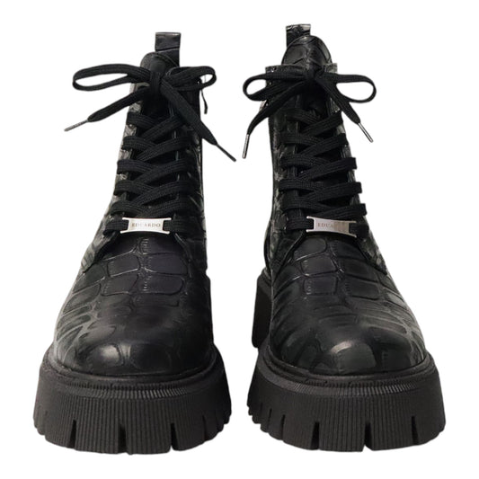 AanbiedingDames Laarsje Croco Patroon Zwart Leer