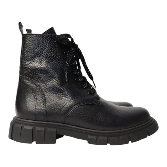 AanbiedingDames Laarsje Zwart Leer met Fijne Structuur