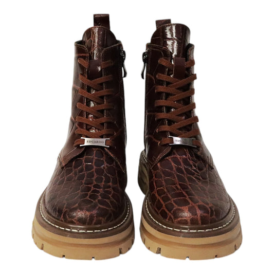 AanbiedingDames Laarsje Croco Patroon Bruin Leer