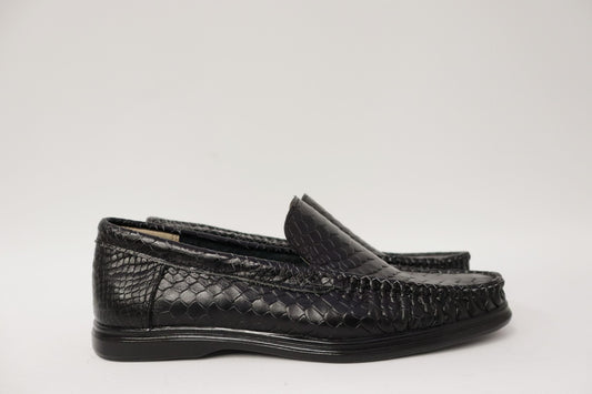 Heren Zwarte Leren Loafer met Zwarte Zool