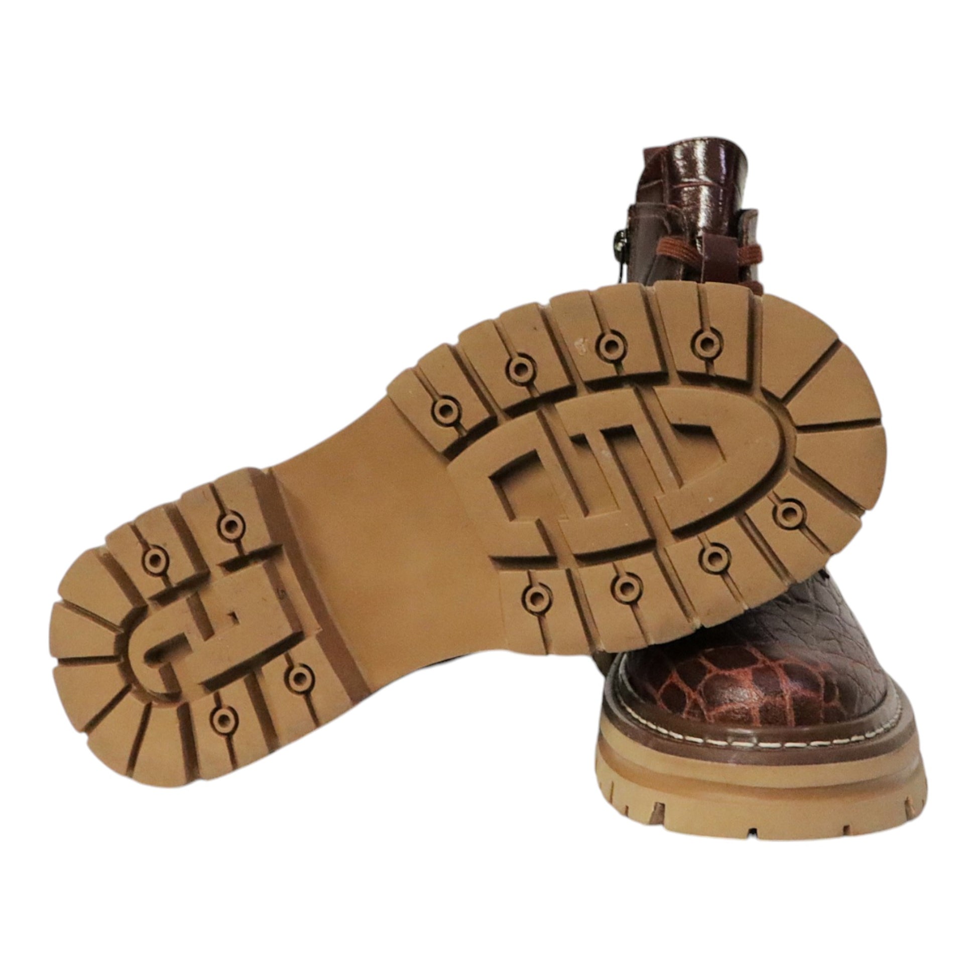 Product omschrijving: Dames Laarsje Croco Patroon Bruin Leer