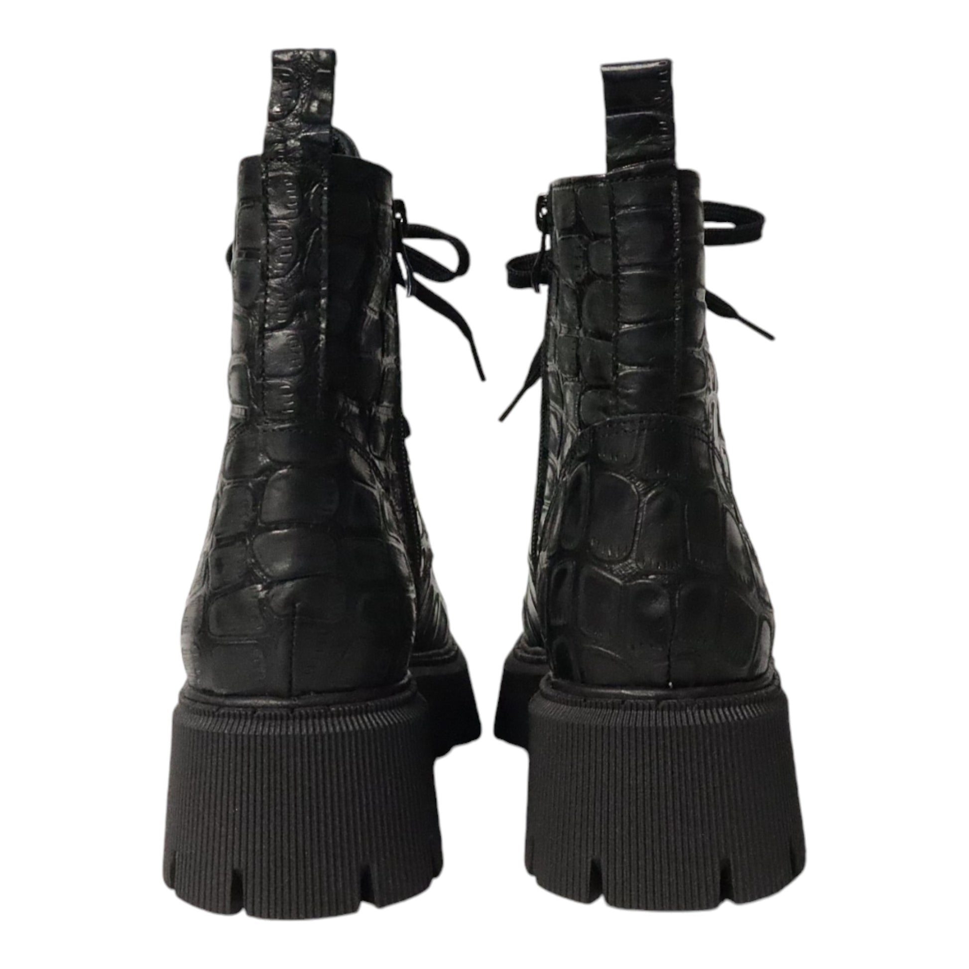 Product omschrijving: Dames Laarsje Croco Patroon Zwart Leer