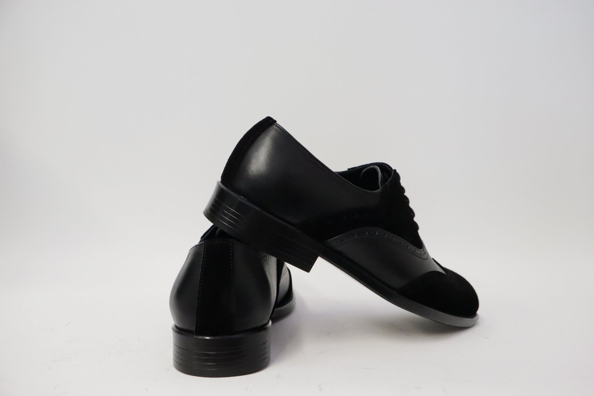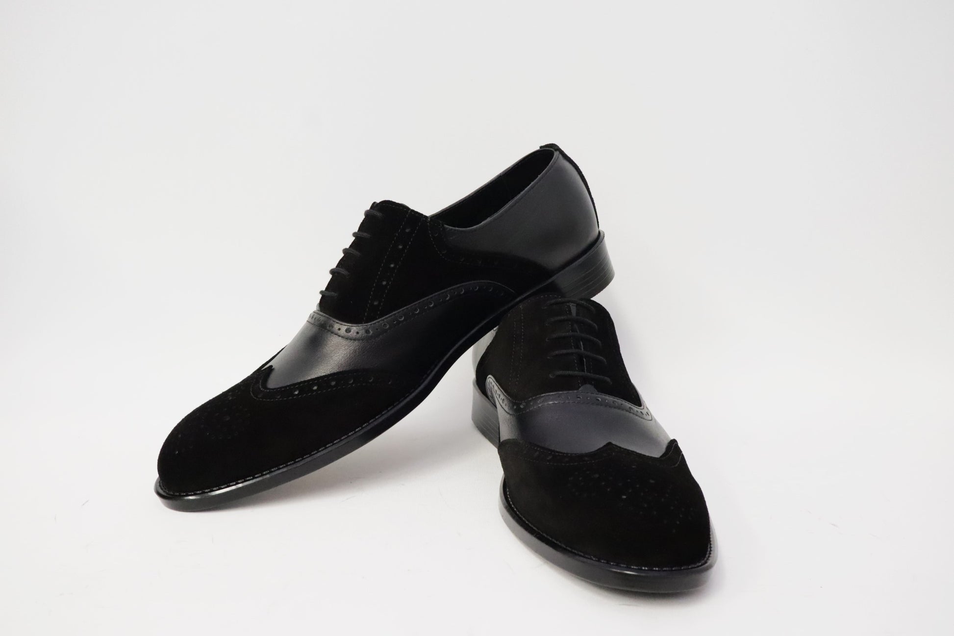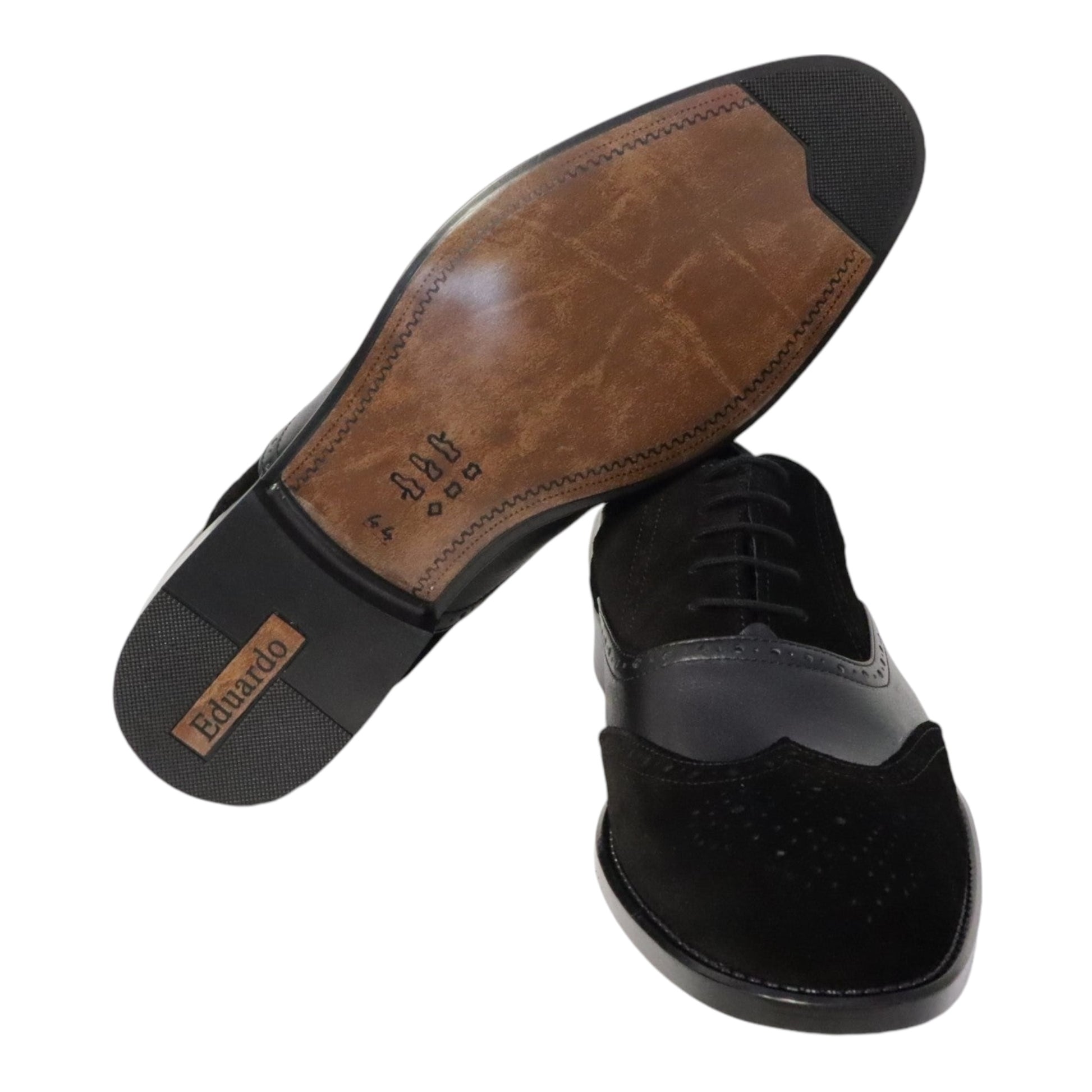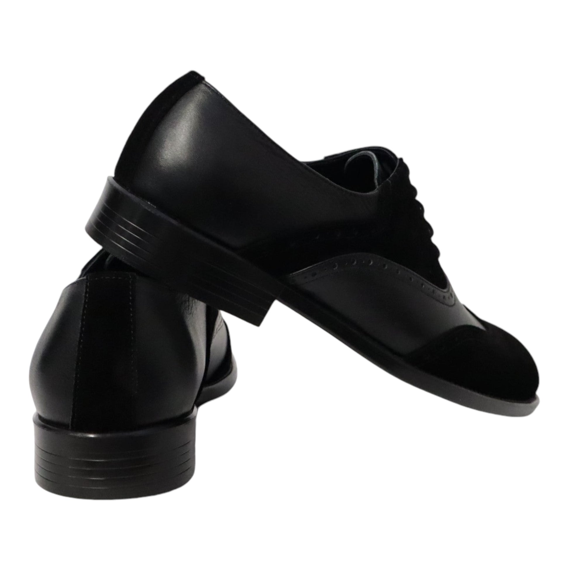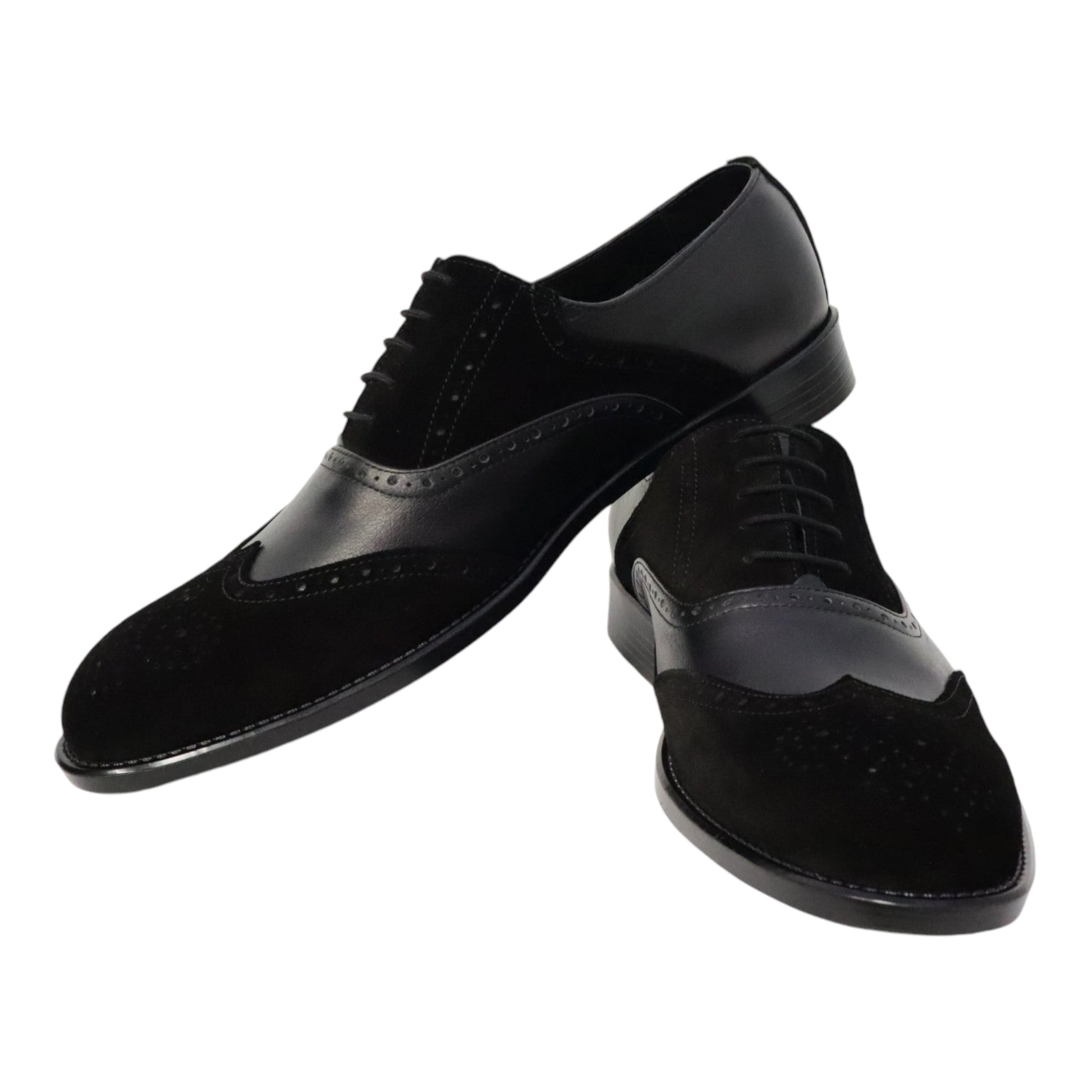 Heren schoen model Spectrum. Gemaakt van zwart leer en zwart suede met unieke patronen. Gemaakt in Nederland!