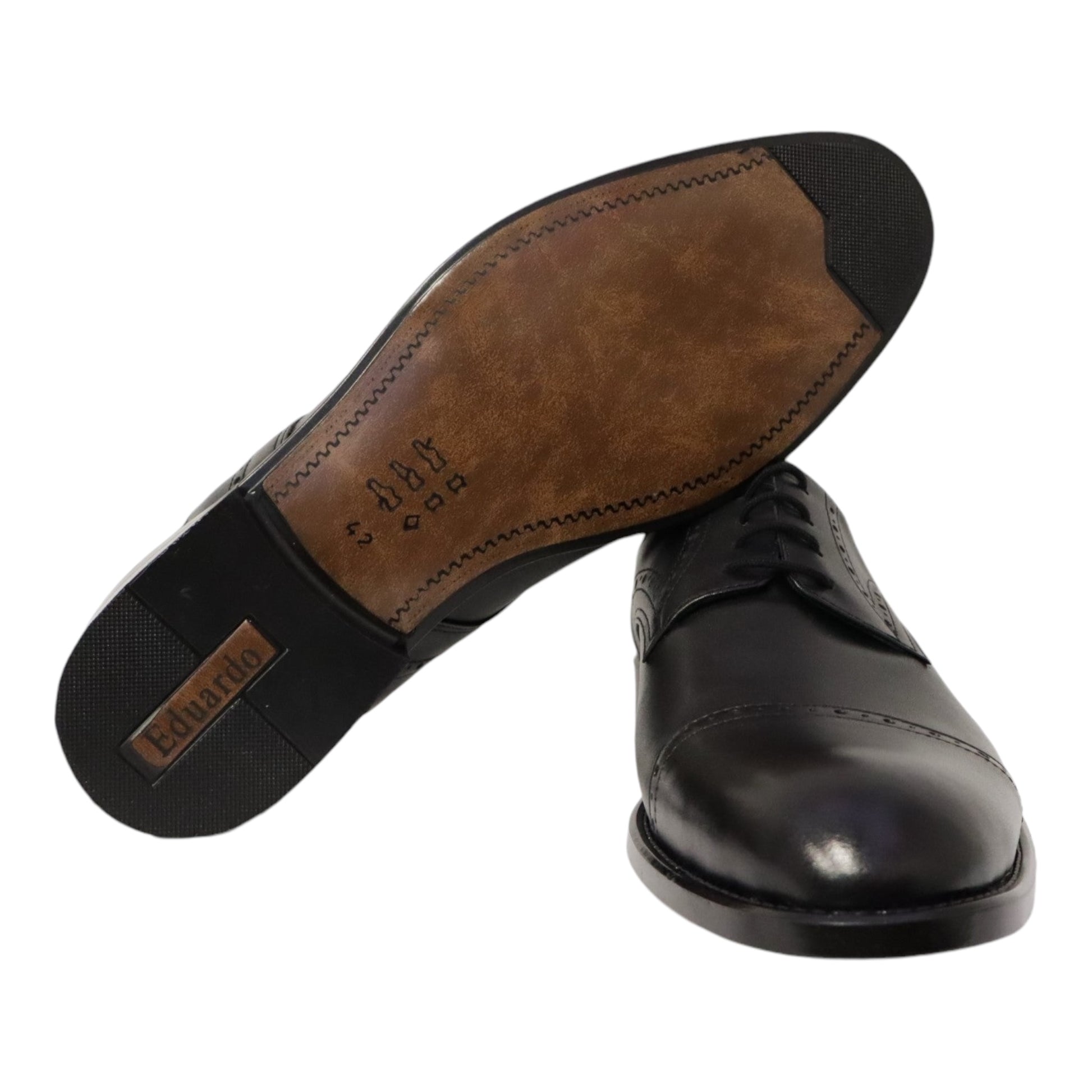 Lage zwarte nette veterschoen voor heren van het Nederlandse merk Eduardo. Deze veterschoen is vervaardigd uit zwarte kwaliteit leer. De binnen voering en het voetbed zijn van leer dat draagt bij aan het loopcomfort. De zool is van rubber voor een goede grip op verschillende loop oppervlakken.