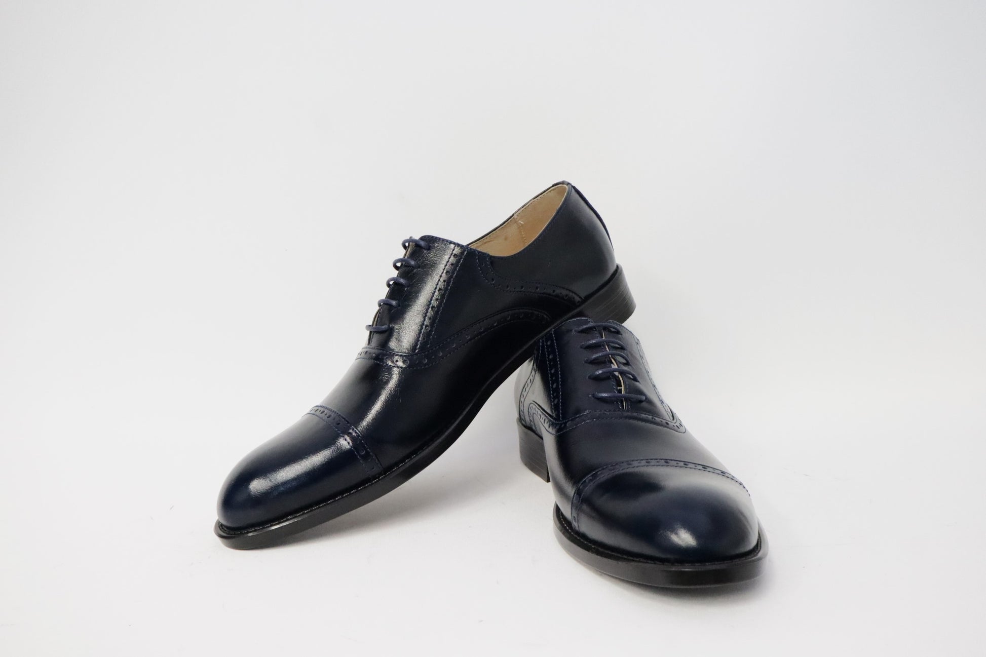 Heren schoen model Sposato. Gemaakt van blauwe kwaliteit leer. Gemaakt in Nederland! Lage donkerblauwe nette herenschoen.
