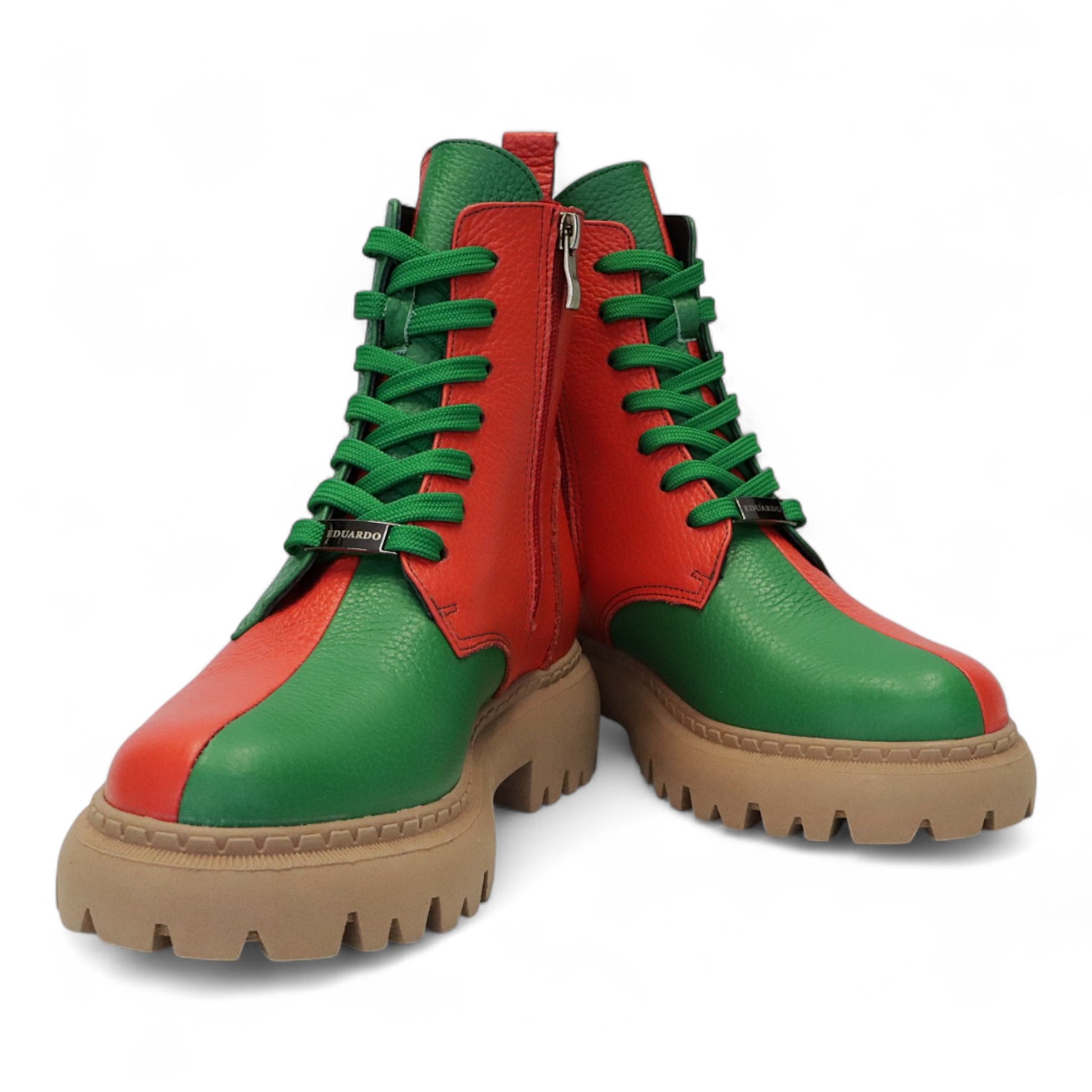 Rood/Groen dames laarsjes van het Nederlandse merk Eduardo. Deze laarsjes zijn vervaardigd uit kwaliteit leer. De binnen voering en het voetbed zijn van leer dat draagt bij aan het loopcomfort. De zool is van rubber voor een goede grip op verschillende loop oppervlakken.
